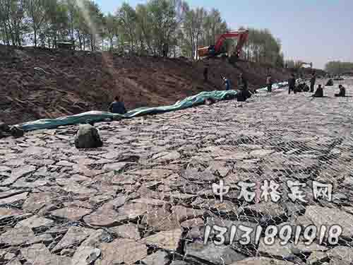 中石格賓網箱是指用重型六角網制成的箱型網籠,也可稱為石籠網或者石籠網網箱。格賓網箱在施工現場經石頭填充,具有柔性、透水性及整體性的特點。格賓網箱由間隔1米的隔板(雙絞合六邊形金屬網片)分成若干單元格,為了加強格賓網箱結構的強度,所有的面網板邊端均采用直徑更粗的鋼絲,用來控制和引導河流及洪水泄洪壩、導流壩巖崩防護、防止水土流失、大橋保護、固土結構、海濱防御工程、港口工程和擋土墻道路防護。