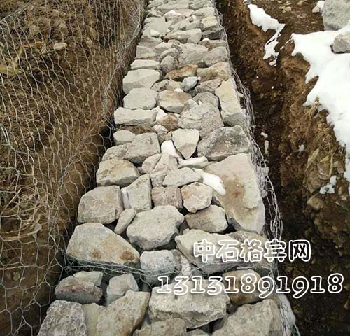 護坡格賓石籠的組裝:格賓籠的連接應平整、均勻,接頭連接整齊、堅固。螺旋連接線為與網箱相同材質的覆樹脂膜鋼絲。單元網箱間隔網與網身成90。相交。間隔網與網身的四處交角各雙股綁扎一道,交接處采用連結線一孔繞一圈呈螺旋狀穿孔絞繞連接。格賓籠綁扎時每隔15~20cm綁扎嵌固。中間進行八字拉結形成1m*1m較為規則的立方體格賓籠后沿施工線擺放。